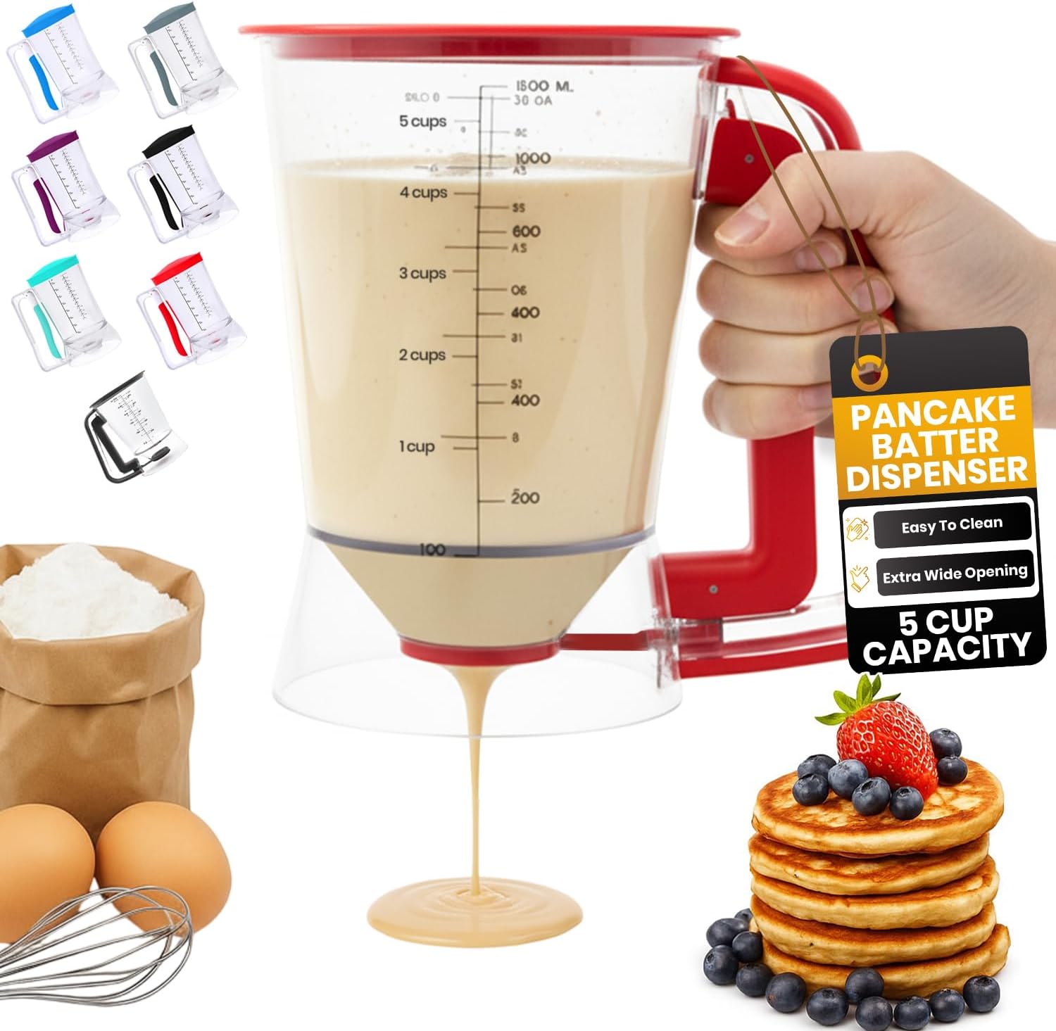 • 5-CUP FAMILY-SIZE CAPACITY – Large Pancake Mix Dispenser with clear measurement markings helps you prep the perfect amount every time. Ideal for weekend brunches, batch cooking, or baking with the kids—always consistent, always easy.